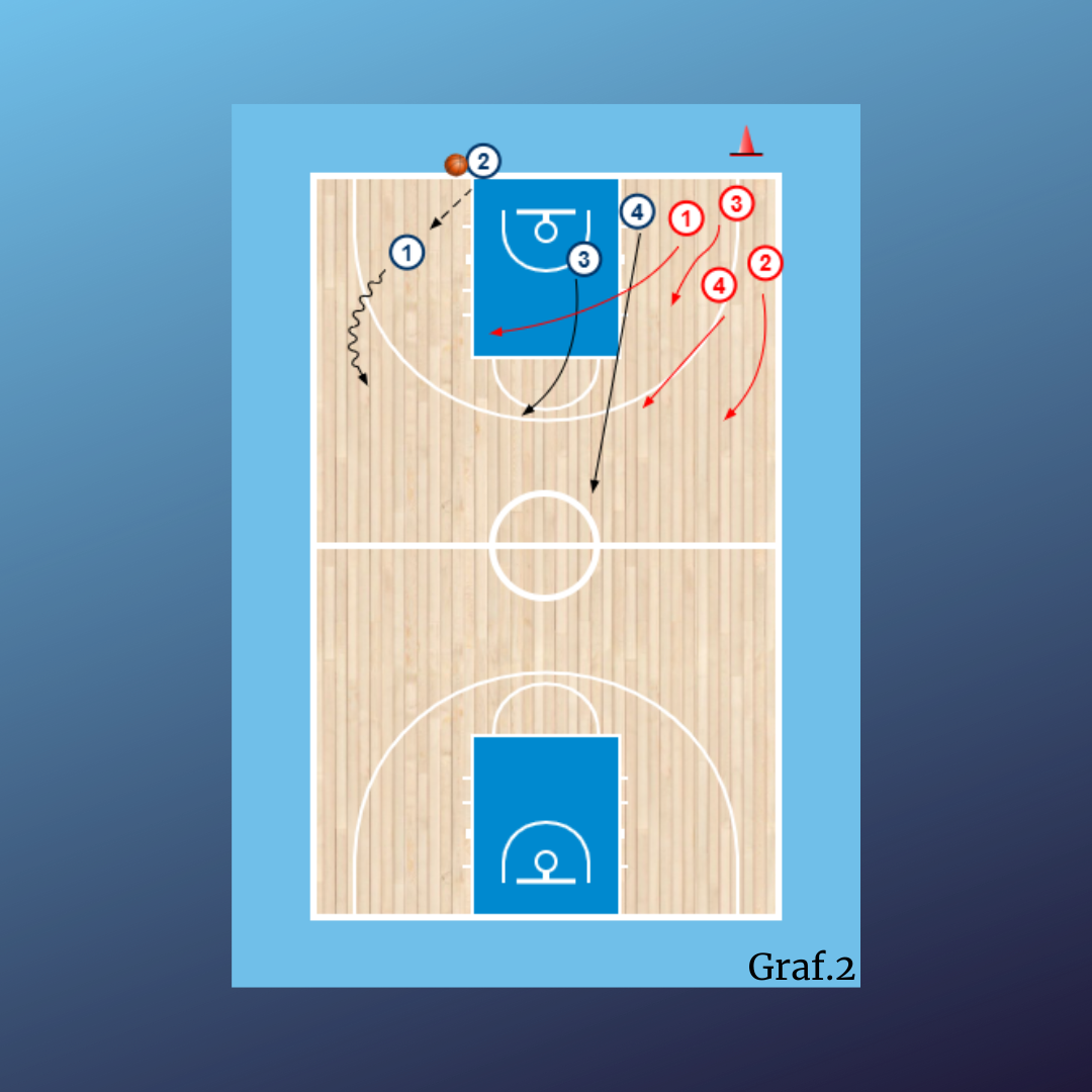 • El equipo que ataca debe anotar y sacar de fondo, los otros 2 jugadores/as del equipo que atacan deben tocar fondo.