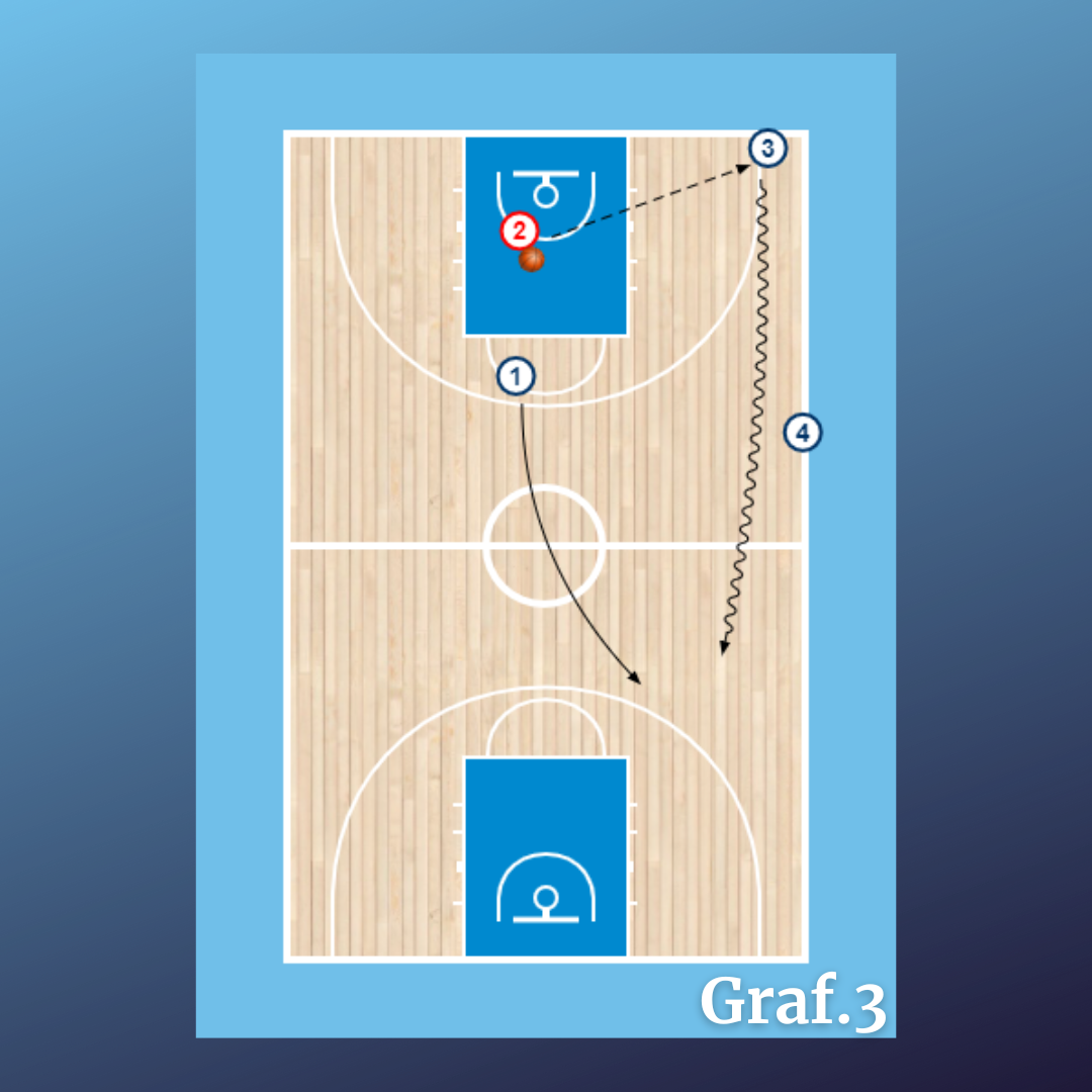 • Se inicia un 1x1 entre el jugador/a 3 y jugador/a 1. Gráfico 3.
