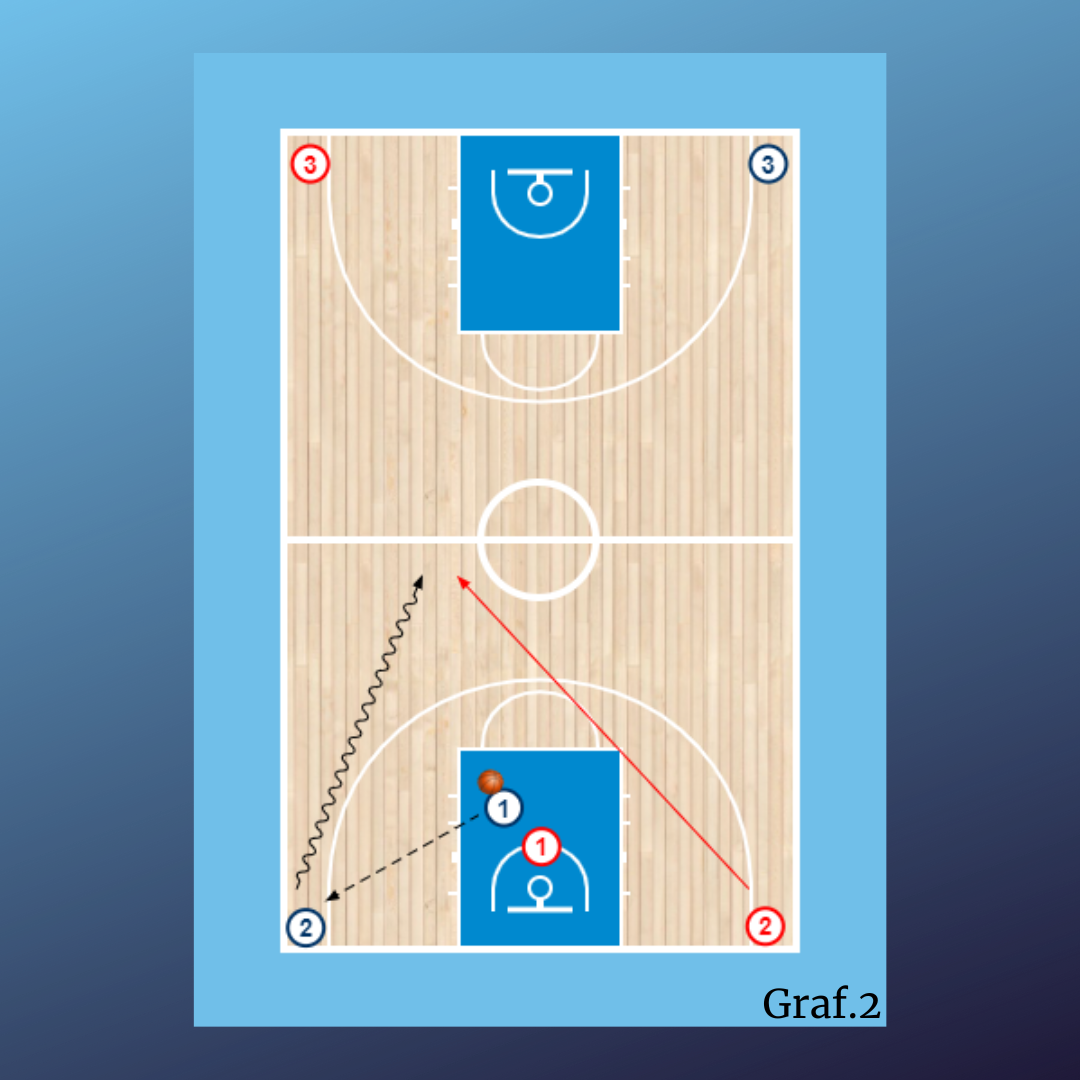• Si la defensa recupera el balón o captura el rebote defensivo, pasa a su compañero para iniciar el 1x1, con el correspondiente cambio de roles.