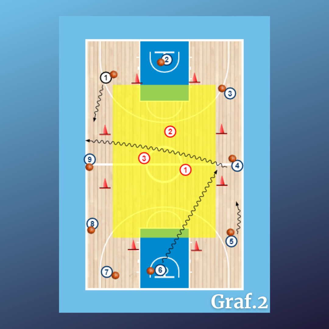 • Colocamos 8 conos formando 4 puertas, dos en las bandas y dos en fondos.