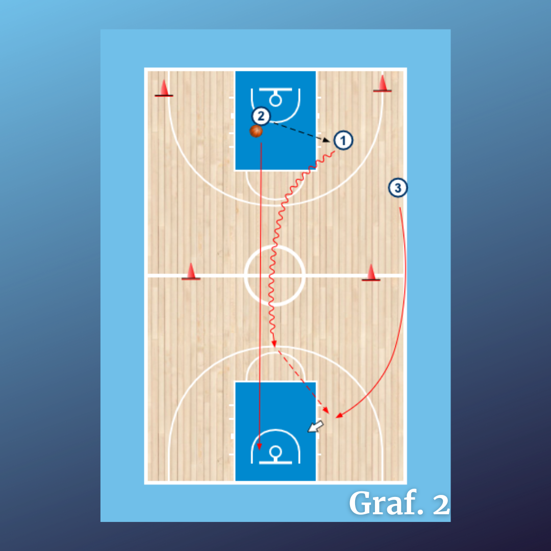 • Jugador/a 2 pasará el balón a jugador/a 3 que finalizará. Graf.2