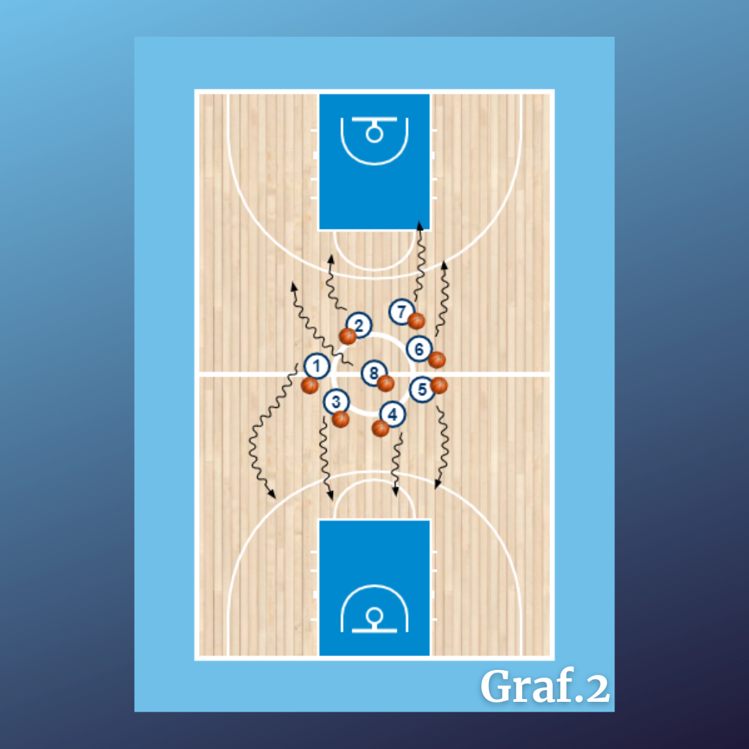 • Todos los jugadores/as con balón en el centro del campo, como se muestra en el gráfico 1.